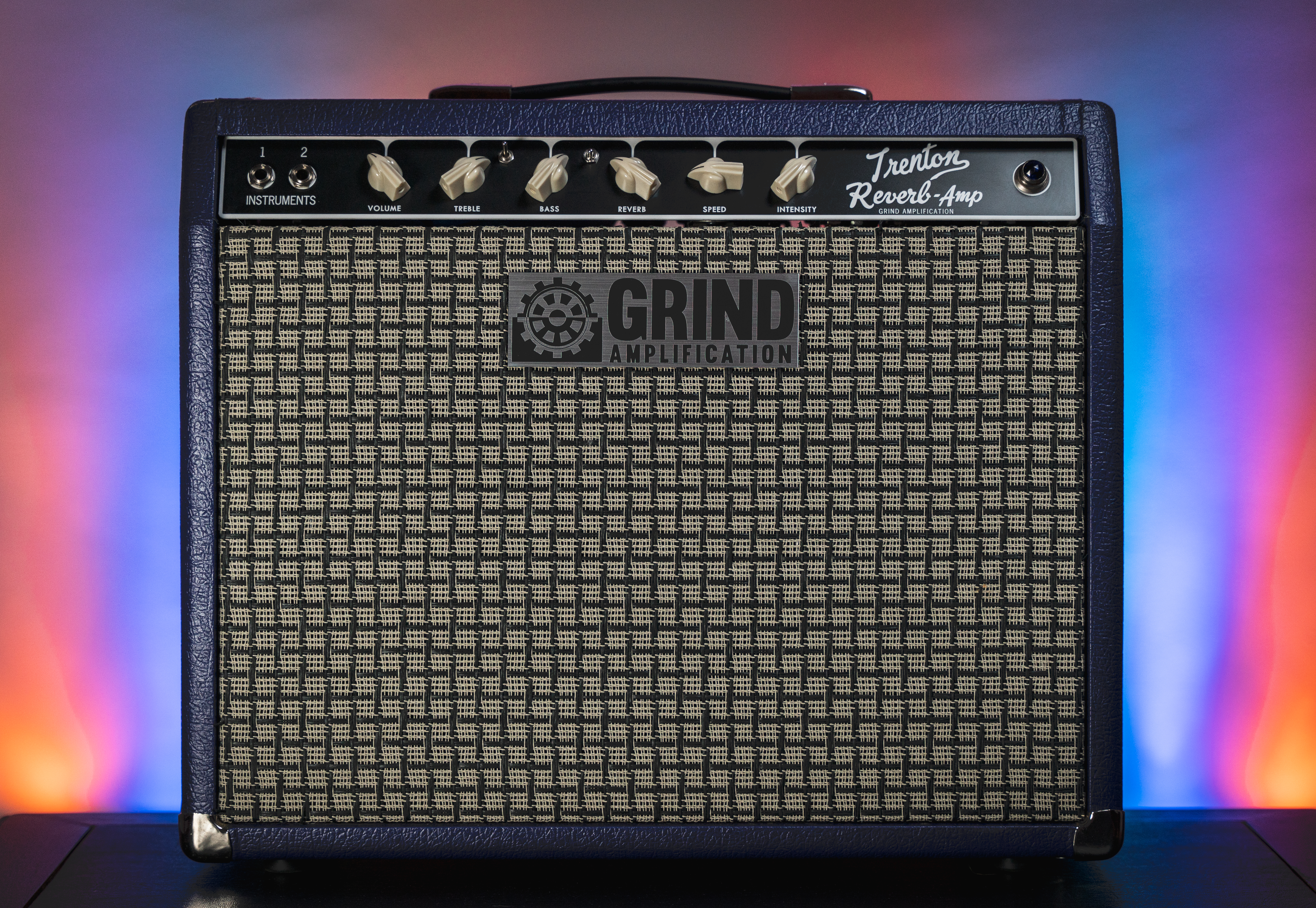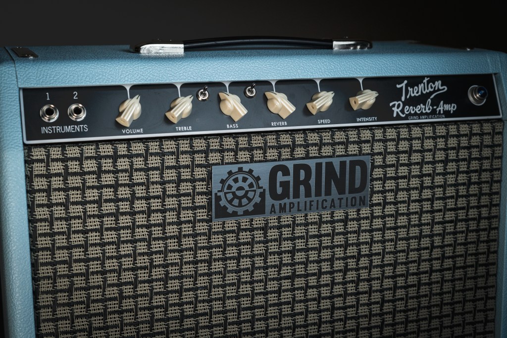 The Trenton Reverb is the ultimate grab-and-go amp, and is available in 15, 20 or 35 watts. The heaviest version, the 35 watt is a full pound lighter than a 15W Princeton Reissue. The 20W is lighter than the 35, and the 15W is even lighter than the 20W. The Trenton is a nod to the classic Princeton Reverb amp, but with over 20 changes to the circuit and with more options (including a three way adjustable mid circuit, a tone stack elimination/boost and switchable/ variable negative feedback to alter the response of the power section). The switch between the Treble and Bass controls varies the level of the mids. In the down position, it emulates the classic tone stack, in the up position, it had a slight mid emphasis. In the middle position, the tone stack is eliminated completely and 100% of your guitars signal goes straight through, which increases the gain in the preamp drastically. Keep in mind that with the mid switch in the middle position, the Bass and Treble knobs will not do anything.